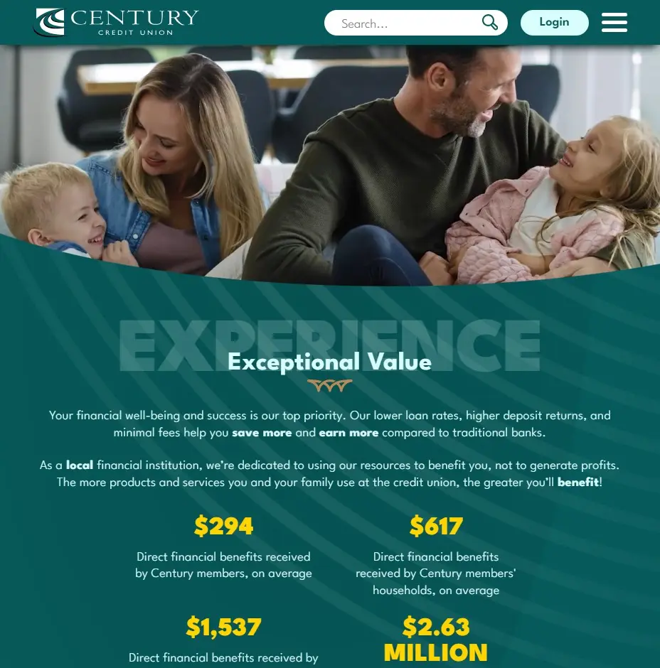 Website RedesignWe recently partnered with Century Credit Union to redesign their website, focusing on a clean, modern design that reflects their brand’s identity and values. Our goal was to create an engaging experience that not only looks stunning but also works seamlessly for the user.