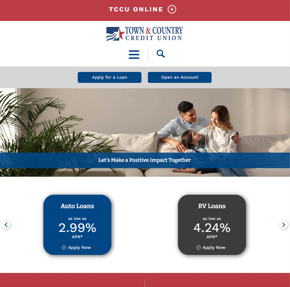 Website RedesignOur goal for Town & Country Credit Union's redesign was to create a modern, user friendly, but still familiar experience for their members.
